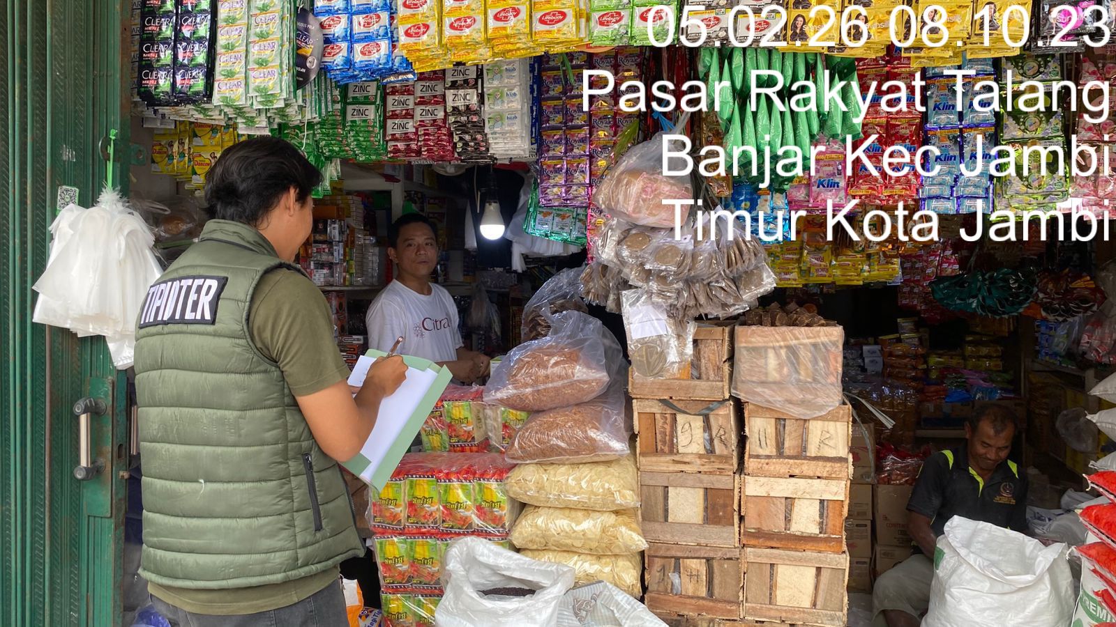 Melalui Unit Tindak Pidana Tertentu (Tipidter) Satreskrim Polresta Jambi, aparat kepolisian bersama Dinas Ketahanan Pangan Kota Jambi melaksanakan pengecekan langsung harga dan ketersediaan beras di Pasar Talang Banjar, Kamis (5/2/2026). Kegiatan ini dipimpin oleh IPTU Edy Triharyadi, S.H., M.H. dan IPTU Dhea Cakra, S.Tr.K., M.H.